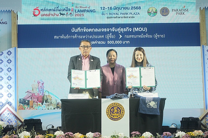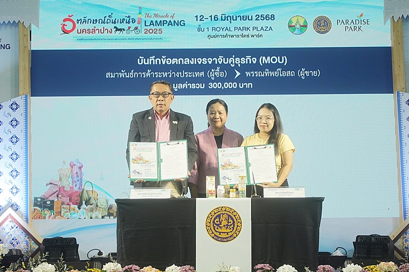 เมื่อวันพฤหัสบดีที่ 12 มิถุนายน 2568 เวลา 17.00 น. นายชุติเดช มีจันทร์ ผู้ว่าราชการจังหวัดลำปาง มอบหมายให้ นางสาวเยาวเรศ แซ่โค้ว พาณิชย์จังหวัดลำปาง เป็นประธานในพิธีเปิดงานแสดงและจำหน่ายสินค้า “อัตลักษณ์ถิ่นเหนือ นครลำปาง” The Miracle of LAMPANG 2025 ภายใต้โครงการส่งเสริมวิสาหกิจขนาดกลางและขนาดย่อม เพื่อสร้างขีดความสามารถในการแข่งขัน โดยส่งเสริมช่องทางการตลาดและการจัดจำหน่ายสินค้าจังหวัดลำปาง กิจกรรม จัดงานแสดงและจำหน่ายสินค้า ณ ภูมิภาคอื่น เพื่อช่วยกันขับเคลื่อนเศรษฐกิจของจังหวัด เป็นการสร้างงานและกระจายรายได้สู่ท้องถิ่น ช่วยเพิ่มขีดความสามารถในการแข่งขันของผู้ประกอบการ อีกทั้งเป็นการเผยแพร่ประชาสัมพันธ์ภาพลักษณ์สินค้าและผลิตภัณฑ์ชุมชนไปยังภูมิภาคอื่นให้เป็นที่รู้จักอย่างแพร่หลาย นำไปสู่การเพิ่มมูลค่าทางการค้าสินค้าและบริการของจังหวัด ณ ชั้น 1 ROYAL PARK PLAZA ศูนย์การค้าพาราไดซ์ พาร์ค ถนนศรีนครินทร์ แขวงหนองบอน เขตประเวศ กรุงเทพมหานคร