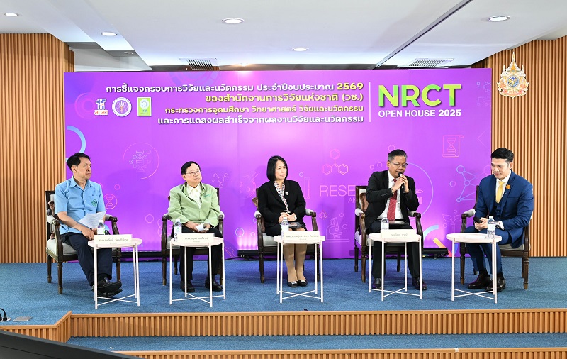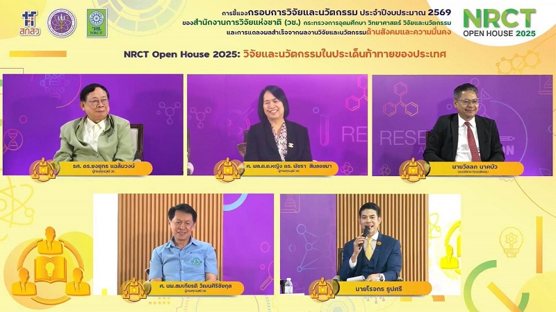 การจัดกิจกรรมเปิดบ้านชี้แจงกรอบการวิจัยและนวัตกรรมของ วช. ประจำปีงบประมาณ 2569 และการแถลงผลสำเร็จจากผลงานวิจัยและนวัตกรรม (NRCT Open House 2025) ระหว่างวันที่ 23 มิถุนายน – 1 กรกฎาคม 2568 ใน 9 ด้าน ดังนี้ ด้านสังคมและความมั่นคง (23 มิถุนายน 2568) ด้านเศรษฐกิจและการเกษตร (24 มิถุนายน 2568) ด้านการพัฒนาเส้นทางอาชีพนักวิจัยและนวัตกรรม และการวิจัยเพื่อฐานทางวิชาการ (25 มิถุนายน 2568) ด้านสัตว์เศรษฐกิจ (26 มิถุนายน 2568) ด้านการรองรับสังคมสูงวัย (27 มิถุนายน 2568) ด้านการจัดการความรู้การวิจัยและถ่ายทอดเพื่อการใช้ประโยชน์ (KM) (28 มิถุนายน 2568) ด้านการพัฒนาเทคโนโลยีและอุตสาหกรรม (29 มิถุนายน 2568) ด้านการพัฒนาศูนย์รวมผู้เชี่ยวชาญ (Hub of Talents) และศูนย์กลางความรู้ (Hub of Knowledge) (30 มิถุนายน 2568) ด้านทรัพยากรธรรมชาติและสิ่งแวดล้อม (1 กรกฎาคม 2568) ซึ่งจัดในรูปแบบ Onsite ณ ห้องจอมพลสฤษดิ์ ธนะรัชต์ ชั้น 2 อาคาร วช.1 และการถ่ายทอดสดผ่านช่องทางออนไลน์ Facebook LIVE : สำนักงานการวิจัยแห่งชาติ
