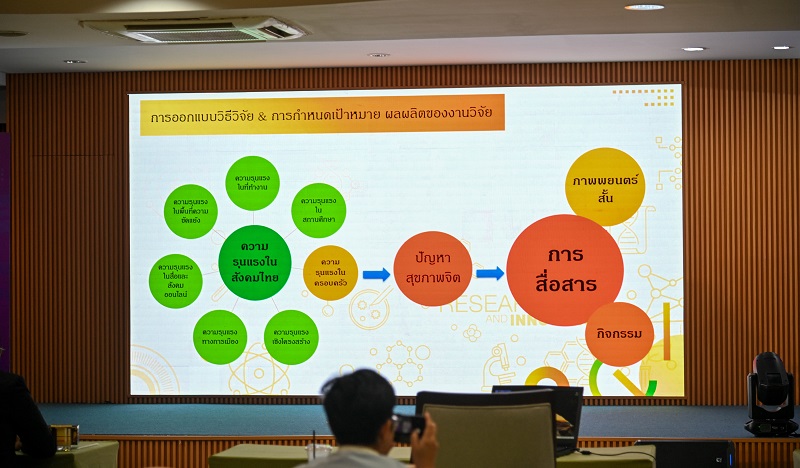 ถัดมา เป็นการนำเสนอภาพรวมผลสำเร็จจากผลงานวิจัยและนวัตกรรมด้านสังคมและความมั่นคง โดย นางสาวสตตกมล เกียรติพานิช ผู้อำนวยการกองบริหารทุนวิจัยและนวัตกรรม 2 วช. และ การแลกเปลี่ยนประสบการณ์การเขียนข้อเสนอการวิจัยและนวัตกรรมในประเด็นต่าง ๆ ดังนี้ ประเด็น “มนุษยศาสตร์และสังคมศาสตร์” โดย รศ. ดร.วิมลทิพย์ สิงห์เถื่อน คณะเทคโนโลยี มหาวิทยาลัยขอนแก่น ประเด็น “ศิลปกรรมศาสตร์” โดย ดร.วิศิษฎ์ ศุภางคะรัตน์ โครงการร่วมบริหารหลักสูตรมีเดียอาตส์และเทคโนโลยีมีเดีย มหาวิทยาลัยเทคโนโลยีพระจอมเกล้าธนบุรี ประเด็น “พัฒนาสังคมคุณธรรม” โดย ดร.กนพร ดอนเจดีย์ สถาบันแห่งชาติเพื่อพัฒนาเด็กและครอบครัว มหาวิทยาลัยมหิดล ประเด็น “การแก้ไขปัญหาคอร์รัปชัน” โดย รศ.ดร.สมบูรณ์ ศิริสรรหิรัญ คณะสังคมศาสตร์และมนุษยศาสตร์ มหาวิทยาลัยมหิดลประเด็น “สังคมไทยไร้ความรุนแรง” โดย ผศ.ดร.จุติพร ปริญโญกุล คณะเทคโนโลยีสื่อสารมวลชน มหาวิทยาลัยเทคโนโลยีราชมงคลพระนคร และ ประเด็น “ความปลอดภัยทางถนน” โดย ดร.นรบดี สาละธรรม กรมทางหลวงชนบท กระทรวงคมนาคม