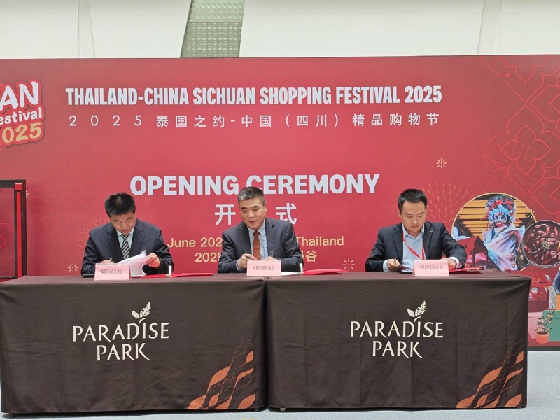 25 มิถุนายน 2568 – สมาคมผู้ส่งออกเอเชียและตะวันออกกลาง (AMEE) ร่วมกับ Vega Intertrade and Exhibitions และ Sichuan Expo Economic Development Co., Ltd. เปิดฉากเทศกาล “Thailand–China (Sichuan) Shopping Festival 2025” อย่างเป็นทางการ ณ ศูนย์การค้า Paradise Park ศรีนครินทร์ เพื่อเฉลิมฉลองวาระครบรอบ 50 ปีความสัมพันธ์ทางการทูตระหว่างไทยและจีน พร้อมสนับสนุนผู้ประกอบการสองประเทศให้ก้าวสู่ตลาดภูมิภาคและระดับสากล