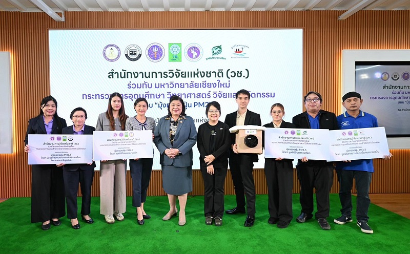 ดร.วิภารัตน์ ดีอ่อง ผู้อำนวยการสำนักงานการวิจัยแห่งชาติ กล่าวว่า กิจกรรมในครั้งนี้จัดขึ้นเพื่อส่งมอบนวัตกรรม “มุ้งกรองฝุ่น PM2.5” ซึ่งเป็นนวัตกรรมจากคณะสาธารณสุขศาสตร์ มหาวิทยาลัยเชียงใหม่ ที่ได้รับการสนับสนุนจาก วช. โดยออกแบบขึ้นเพื่อรองรับกลุ่มเปราะบางที่ต้องเผชิญกับมลภาวะทางอากาศ อาทิ เด็กเล็ก ผู้สูงอายุ ผู้ป่วย และประชาชนทั่วไป มุ่งเน้นการยกระดับคุณภาพชีวิตและสร้างอากาศที่สะอาดให้แก่ผู้ที่ต้องเผชิญกับความเสี่ยงจากมลภาวะทางอากาศ และในโอกาสนี้ วช. ได้มอบเงินบริจาคจากกิจกรรมภายในงานมหกรรมงานวิจัยแห่งชาติ 2568 ซึ่งจัดขึ้นระหว่างวันที่ 16 – 20 มิถุนายน 2568 ให้แก่มูลนิธิ 4 แห่ง ได้แก่