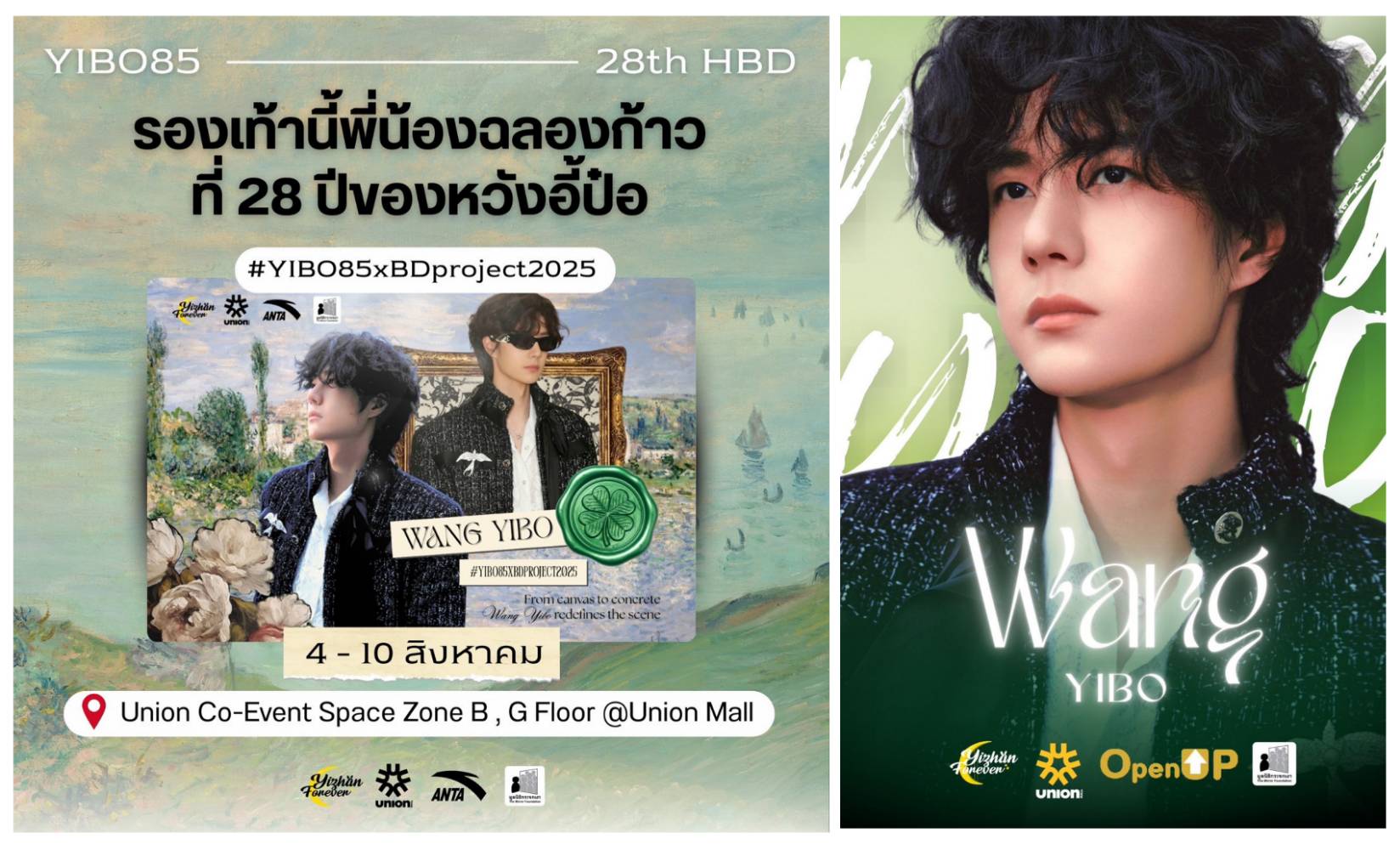 พลังรักแห่งแฟนคลับ “หวังอี้ป๋อ” โดยกลุ่ม YiZhan Forever TH Fans ร่วมกับ  UNION MALL และแบรนด์ ANTA Thailand และ SF CINEMA จัดกิจกรรมแฮปปี้เบิร์ดเดย์ ฉลองก้าวที่ 28 ปี “หวังอี้ป๋อ” มอบรองเท้านี้เพื่อน้องในถิ่นทุรกันดาร ให้กับมูลนิธิกระจกเงา งานนี้จัดระหว่างวันที่ 4 – 10 สิงหาคม 2568 มีกิจกรรมมากมายให้เหล่าเอฟซี หวังอี้ป๋อ นักแสดงหนุ่มสุดหล่อแดนมังกรได้มาเอนจอยในอีเวนต์สุดปังแห่งปี กิจกรรมเยอะฉ่ำ ๆ เริ่มตั้งแต่