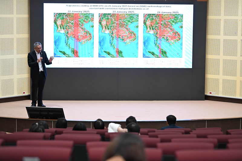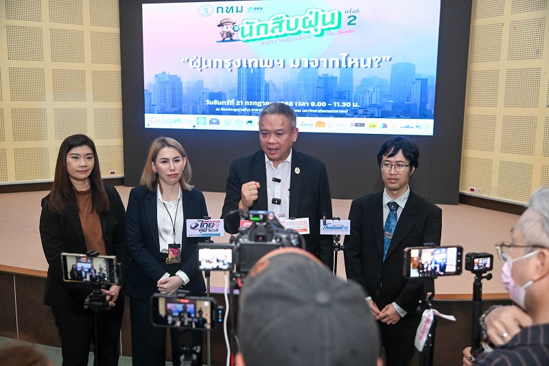 รศ. ดร.สุรัตน์ บัวเลิศ หัวหน้ากลุ่มวิจัยวิทยาศาสตร์บรรยากาศ กล่าวถึงสาเหตุสำคัญของการเกิดฝุ่นละอองในเขตกรุงเทพฯ ไม่ว่าจะเป็นการจราจรที่หนาแน่น การเผาในที่โล่ง รวมถึงฝุ่นทุติยภูมิ ซึ่งล้วนเป็นปัจจัยที่ส่งผลกระทบต่อคุณภาพอากาศและเป็นอันตรายต่อสุขภาพของประชาชน ทั้งนี้ ยังพบว่าฝุ่นละอองบางส่วนมีการพัดพาจากระยะไกล และมีความเข้มข้นของฝุ่นสูง โดยเฉพาะในช่วงที่มีลักษณะทางอุตุนิยมวิทยาเอื้อต่อการสะสมตัวของฝุ่น ปัจจัยด้านอุณหภูมิและความชื้น ล้วนเป็นตัวแปรที่ส่งผลให้ฝุ่นละอองไม่สามารถลอยตัวและกระจายออกจากพื้นที่ ส่งผลให้ระดับความเข้มข้นของฝุ่นในบรรยากาศเพิ่มสูงขึ้น