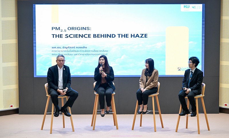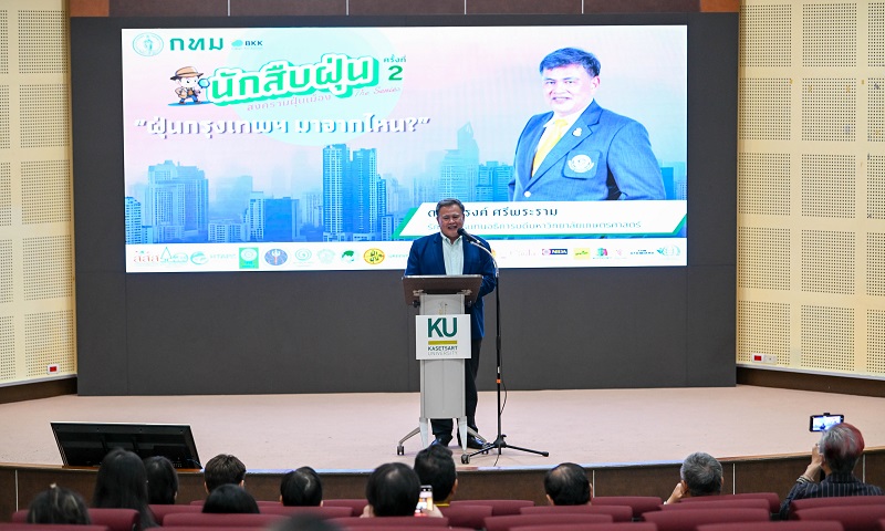วันที่ 21 กรกฎาคม 2568 สำนักงานการวิจัยแห่งชาติ (วช.) กระทรวงการอุดมศึกษา วิทยาศาสตร์ วิจัยและนวัตกรรม ร่วมกับ กรุงเทพมหานคร, สำนักงานกองทุนสนับสนุนการสร้างเสริมสุขภาพ (สสส.), สภาลมหายใจกรุงเทพมหานคร และมหาวิทยาลัยเกษตรศาสตร์ จัดกิจกรรม “นักสืบฝุ่น The series สงครามฝุ่นเมือง” ครั้งที่ 2 ภายใต้หัวข้อ “ฝุ่นกรุงเทพฯ มาจากไหน” โดย ดร.ดำรงค์ ศรีพระราม รักษาการแทนอธิการบดีมหาวิทยาลัยเกษตรศาสตร์ กล่าวเปิดงาน พร้อมนี้ ดร.วิภารัตน์ ดีอ่อง ผู้อำนวยการสำนักงานการวิจัยแห่งชาติ กล่าวถึงประเด็นเรื่อง “การค้นหาแหล่งที่มาของวิกฤตฝุ่นใน กทม. และแนวทางความร่วมมือด้านวิชาการ”, รศ.ดร.ตุลวิทย์ สถาปนจารุ คณบดีคณะสิ่งแวดล้อม กล่าวรายงาน และ รศ. ดร.สุรัตน์ บัวเลิศ หัวหน้ากลุ่มวิจัยวิทยาศาสตร์บรรยากาศ คณะสิ่งแวดล้อม มหาวิทยาลัยเกษตรศาสตร์ กล่าวเปิดประเด็นเรื่อง “DNA ฝุ่นเมือง” ณ ห้องประชุมรวงข้าว อาคารวชิรานุสรณ์ คณะเกษตร มหาวิทยาลัยเกษตรศาสตร์