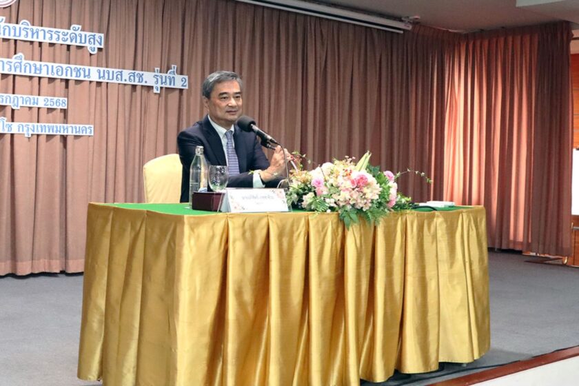 อภิสิทธิ์ เวชชาชีวะ อดีตนายกรัฐมนตรี ให้เกียรติมาเป็นวิทยากรบรรยายเรื่อง “การบริหารการศึกษาไทยหลังยุค AI” ให้กับ “โครงการพัฒนานักบริหารระดับสูง สำนักงานคณะกรรมการส่งเสริมการศึกษาเอกชน (นบส.สช.) รุ่นที่ 2” โดยมี พัชนี จุลสุคนธ์ ประธานรุ่น 2 ดำรงศักดิ์ อรชุน หัวหน้าโครงการฯ และ มร. โรบิน ลี รองประธานและผู้จัดการทั่วไปกลุ่มโรงแรมดิเอมเมอรัลด์ ร่วมให้การต้อนรับ ที่โรงแรม ฮิพ เมื่อวันก่อน
