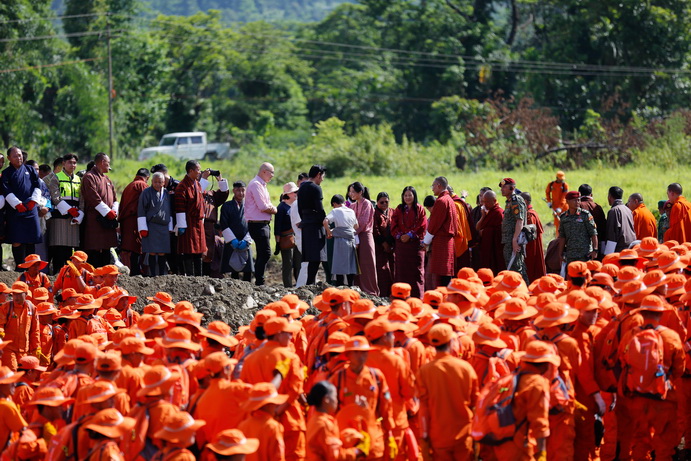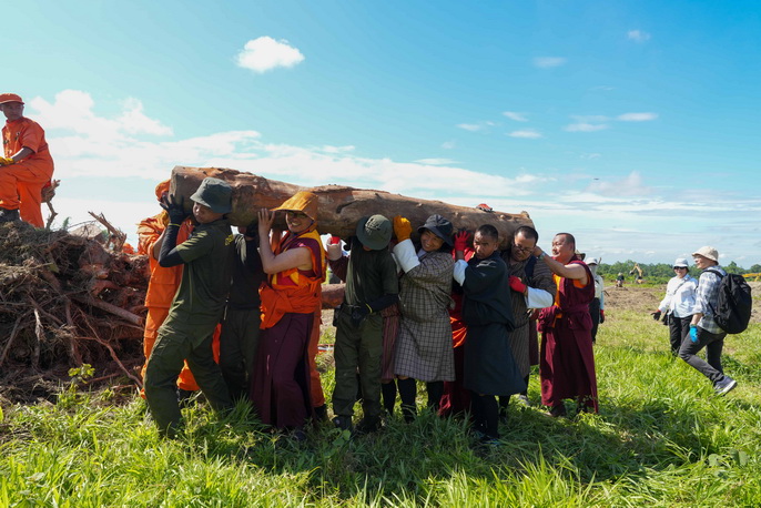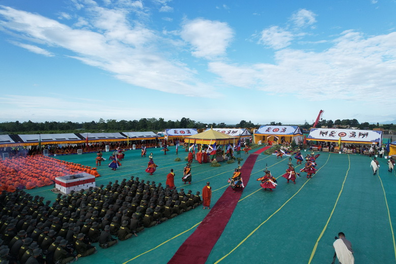 Their Majesties were joined by over a thousand Desuup and Gyalsup volunteers to offer zhabtog – a tradition of voluntary service that has contributed to the construction of homes, monuments, and infrastructure for communities and the nation over the centuries.