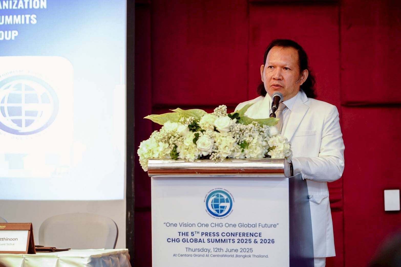 งานแถลงข่าว เชิญชวนทุกภาคส่วน และนักธุรกิจที่สนใจร่วมงาน การประชุมด้านพลังงาน/สุขภาพและการลงทุนเทคโนโลยี นวัตกรรม ระดับนานาชาติ ครั้งยิ่งใหญ่ แห่ง ทศวรรษ โดยมีเครือข่ายกว่า 190 ประเทศทั่วโลก ในวันที่ 21-24 ตุลาคม 2568 ที่จะถึงนี้ CHG Global Summits 2025