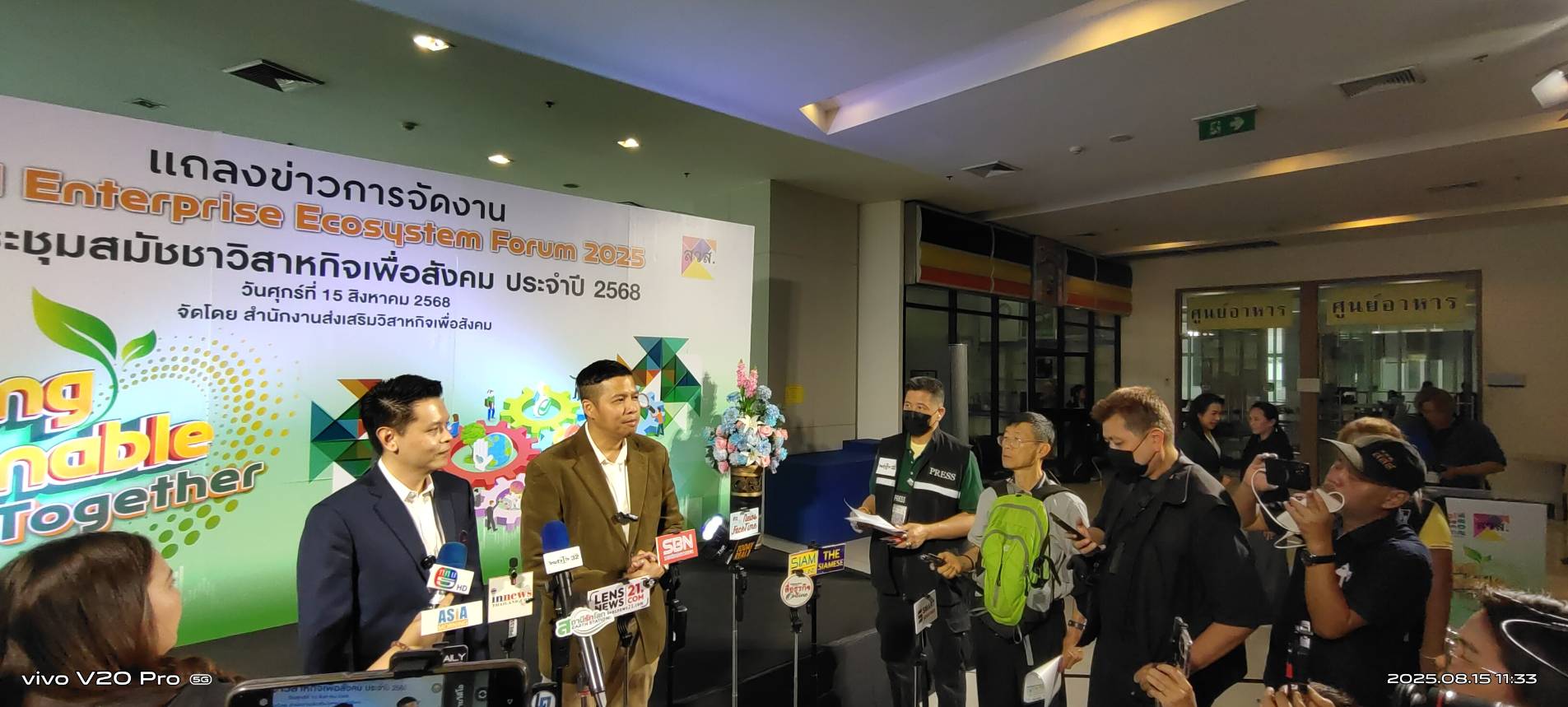สวส. แถลงข่าว จัดงาน “Social Enterprise Ecosystem Forum 2025 ” ระหว่าง 11-12กันยายน 68 ณ ห้องประชุมเบญจพัชร ททบ.5