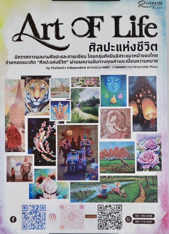 คุณมงคล ไชยวงศ์ กล่าวว่า ชมรมศิลปินสยามได้ทำงานร่วมกับศิลปินมานานนับสิบปี และได้มีการนำผลงานศิลปะไปจัดแสดงเผยแพร่ทั้งในประเทศและต่างประเทศอย่างต่อเนื่อง ครั้งนี้ขอเรียนเชิญท่านให้เกียรติเข้าชมนิทรรศการศิลปะและภาพเขียน ART OF LIFE และสนับสนุนผลงานทรงคุณค่าของศิลปินไทย ตั้งแต่20 สิงหาคม – 8 กันยายน 2568 ณ ห้องแสดงนิทรรศกาล Co-Creative space 3rd floor ศูนย์การค้าริเวอร์ไซด์ พลาซ่า กรุงเทพฯ (ถนน เจริญนคร) หรือ เข้าชมงานศิลปะ online โดยการแสกน QR code ของโครงการแสดงนิทรรศการศิลปะในครั้งนี้ ตั้งแต่บัดนี้เป็นต้นไป