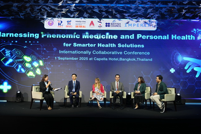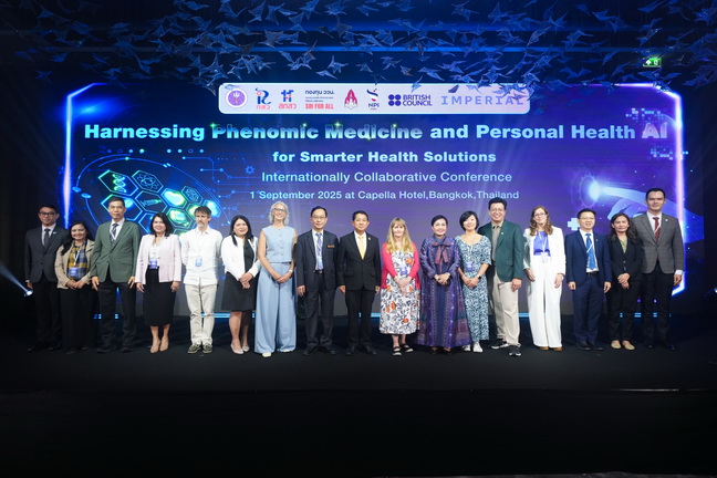 กรุงเทพฯ – 1 กันยายน 2568 –มหาวิทยาลัยขอนแก่น โดยสถาบันฟีโนมแห่งชาติ ร่วมกับคณะแพทยศาสตร์ มหาวิทยาลัยขอนแก่น พร้อมด้วยภาคีเครือข่ายทางวิชาการ และคณะแพทยศาสตร์ Imperial College London สหราชอาณาจักรฯ จัดงานประชุมวิชาการความร่วมมือระดับนานาชาติ หัวข้อ “การใช้ประโยชน์จากการแพทย์ฟีโนมและปัญญาประดิษฐ์เพื่อยกระดับสุขภาพอัจฉริยะ” ณ ห้อง Ballroom โรงแรมคาเพลลา กรุงเทพมหานคร โดยได้รับงบประมาณสนับสนุนจาก British Council สหราชอาณาจักรฯ การประชุมครั้งนี้มีวัตถุประสงค์เพื่อเป็นเวทีแลกเปลี่ยนองค์ความรู้และประสบการณ์ด้านการแพทย์ฟีโนม ปัญญาประดิษฐ์ และนโยบายสุขภาพดิจิทัล เพื่อยกระดับการแพทย์แม่นยำและการพัฒนาระบบสุขภาพของประเทศอย่างแท้จริง อีกทั้งยังเป็นเวทีการเรียนรู้จากผู้เชี่ยวชาญนานาชาติที่มีประสบการณ์ตรงในการประยุกต์ใช้การแพทย์ฟีโนมในระบบสาธารณสุขของสหราชอาณาจักรฯ ออสเตรเลีย จีน และสิงคโปร์