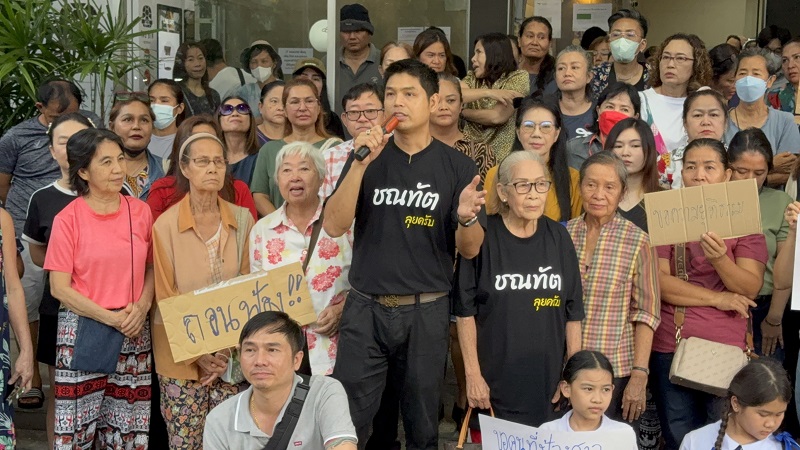 โดย นาย ชณทัต กล่าวว่า วันนี้ตนมารวมตัวเพื่อแสดงพลัง เนื่องจากตนได้เข้ามาช่วยเหลือทางคอนโดจนสามารถกลับมาใช้งานได้ แต่กับถูกฟ้อง รวมถึง คุณหมวยพิธีกร รายการโหนกระแส และ ลูกบ้านคอนโดที่ไปออกรายการ3คน ตนมองว่ามันไม่สมควร สิ่งนึงคือการที่เรามาแถลงวันเนี้ยมาประชาชนมาหลักร้อยคนวันนี้ เพื่อที่จะอธิบายถือป้ายเพื่อที่จะบอกกับศาลว่าพวกตนไม่ผิดพวกตนมาช่วยมาทำความดี แต่หวังว่าเสียงของพวกตนจะส่งไปถึงศาลส่งไปถึงพี่น้องประชาชนทั้งประเทศให้รู้ว่าวันเนี้ย การทำความดีจะต้องได้รับการปกป้องจากประชาชนนะครับนี่คือสิ่งที่เกิดขึ้นหวังเป็นอย่างยิ่งว่า อยากให้คนที่ฟ้องมีจิตสำนึกหน่อยว่าคุณกำลังทำร้ายคนกำลังทำความดีและคนจะทำความดีเขาจะกล้าทำความดีต่อไปหรือเปล่าถ้าเจออะไรแบบนี้