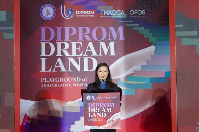 นางสาวณัฏฐิญา กล่าวต่อว่า “DIPROM DREAM LAND” (ดีพร้อม ดรีม แลนด์) เป็นเวทีโชว์ผลงานที่รวมพลังของนักออกแบบ ผู้ประกอบการที่ผ่านการพัฒนาศักยภาพและยกระดับจากกรมส่งเสริมอุตสาหกรรม และได้รับคัดเลือกจำนวน 30 กิจการที่มีความโดดเด่นจากผู้เข้าร่วมโครงการทั้งหมดกว่า 155 กิจการ เข้าร่วมกิจกรรมการทดสอบตลาด ให้สามารถต่อยอดความสำเร็จ ด้วยการสร้างมูลค่าเพิ่มตามนโยบาย “ดีพร้อมคอมมูนิตี้ ที่นี่มีแต่ให้” ผ่านกลยุทธ์ “4 ให้ 1 ปฏิรูป” ของ นางสาวณัฏฐิญา เนตยสุภา อธิบดีกรมส่งเสริมอุตสาหกรรม ทั้งหมดนี้มีเป้าหมายเพื่อยกระดับคุณภาพสินค้า และสร้างความเชื่อมั่นในแบรนด์ไทยคุณภาพ โดยมุ่งหวังให้ซอฟต์พาวเวอร์กลายเป็นโอกาสทางการค้าอย่างต่อเนื่อง ทั้งในรูปแบบของยอดขายภายในงาน ข้อตกลงทางธุรกิจ และการต่อยอดสู่ตลาดต่างประเทศ ซึ่งเน้นการผลักดันเศรษฐกิจสร้างสรรค์ และอุตสาหกรรมเป้าหมาย ปฏิรูปภาคอุตสาหกรรมไทย ด้วยการเสริมความแข็งแกร่งในห่วงโซ่อุปทาน พัฒนาทักษะคนและชุมชน ให้พร้อมสู่อนาคต และ สร้างความเป็นธรรมในการแข่งขัน ให้กับ SMEs ไทย ดีพร้อม จึงออกแบบพื้นที่ “DIPROM DREAM LAND” (ดีพร้อม ดรีม แลนด์) ให้เป็นเสมือน “ตลาดทดลอง” ที่ผู้ประกอบการจะได้ทั้งข้อมูลอินไซต์ โอกาสทางการค้า และแรงบันดาลใจในการเติบโตอย่างยั่งยืนทั้งในประเทศและสู่ตลาดโลก