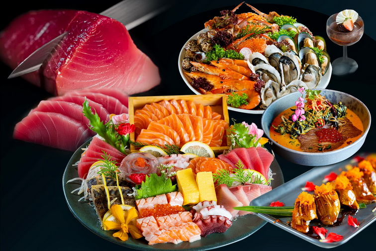 -บุฟเฟต์นานาชาติมื้อเย็น ที่รวมซีฟู้ดและซูชิพรีเมียม อาทิ ทูน่าบลูฟิน ฟัวกราส์ วากิว หอยนางรม