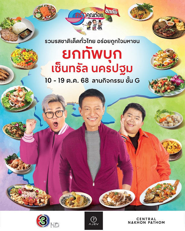 “ครัวคุณต๋อยยกทัพ” บุก! เซ็นทรัล นครปฐม จัดขึ้นระหว่าฃวันที่ 10 – 19 ตุลาคม 2568 ณ ลานกิจกรรม ชั้น G เวลาเปิด-ปิด วันจันทร์-วันศุกร์ 10.00 น.- 21.00 น. / วันเสาร์-อาทิตย์ และวันหยุดนักขัตฤกษ์ 10.00 น.- 22.00 น.