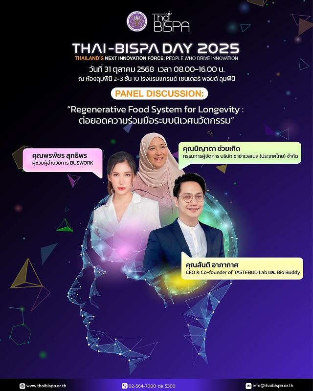 ร่วมเปิดมุมมองใหม่ของการพัฒนาคนไทยให้เป็น “พลังขับเคลื่อนนวัตกรรมแห่งอนาคต”กับ Thai-BISPA Day 2025 เวทีที่รวม “ผู้นำ ผู้สร้าง และผู้ขับเคลื่อนนวัตกรรมไทย” ในวันที่ 31 ตุลาคม 2568 เวลา 8.00-16.00 น. ณ ห้องลุมพินี 2-3 ชั้น 10 โรงแรมแกรนด์ เซนเตอร์ พอยต์ ลุมพินี ถนนพระราม 4 กรุงเทพฯ