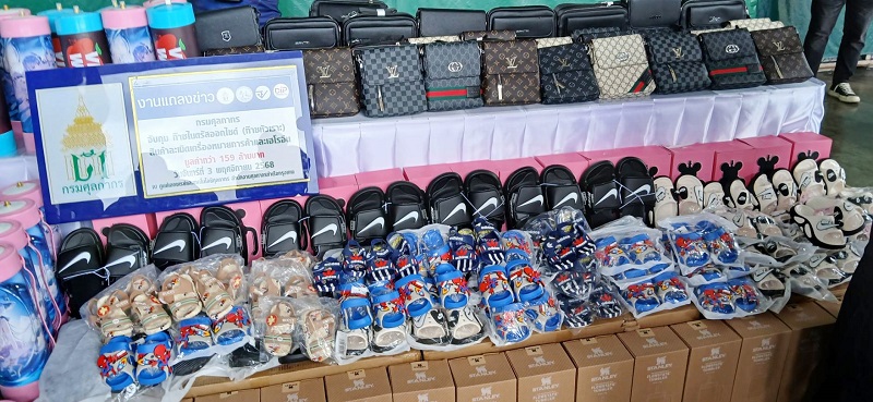 ระหว่างเดือนกันยายน – ตุลาคม 2568 กรมศุลกากร โดยสำนักงานศุลกากรท่าเรือกรุงเทพ ตรวจสอบสินค้านำเข้า ต้นทางประเทศจีน สำแดงเป็นสินค้าเบ็ดเตล็ด จากการตรวจสอบพบว่า มีสินค้าบางส่วนไม่ได้สำแดงในใบขนสินค้า และยังพบว่าเป็นสินค้าละเมิดเครื่องหมายการค้า เช่น รองเท้าแตะ แบตเตอรี่ กระเป๋า และแก้วเก็บอุณหภูมิ รวมทั้งสิ้น 70 หีบห่อ จำนวน 18,175 ชิ้น มูลค่าความเสียหายทางเศรษฐกิจกว่า 55 ล้านบาท กรณีดังกล่าวเป็นการนำสินค้าต้องห้ามเข้ามาในราชอาณาจักร ตามประกาศกระทรวงพาณิชย์ เรื่อง กำหนดให้สินค้าละเมิดเครื่องหมายการค้าและสินค้าละเมิดลิขสิทธิ์เป็นสินค้าที่ต้องห้ามส่งออก ห้ามนำเข้า และห้ามนำผ่านราชอาณาจักร พ.ศ. 2565 และเป็นการละเมิดเครื่องหมายการค้า อันเป็นความผิดตามมาตรา 202 244 252 166 และ 167 แห่ง พ.ร.บ. ศุลกากร พ.ศ. 2560 ประกอบกับ พ.ร.บ. การส่งออกไปนอกและการนำเข้ามาในราชอาณาจักรซึ่งสินค้า พ.ศ. 2522 และ พ.ร.บ. เครื่องหมายการค้า พ.ศ. 2534