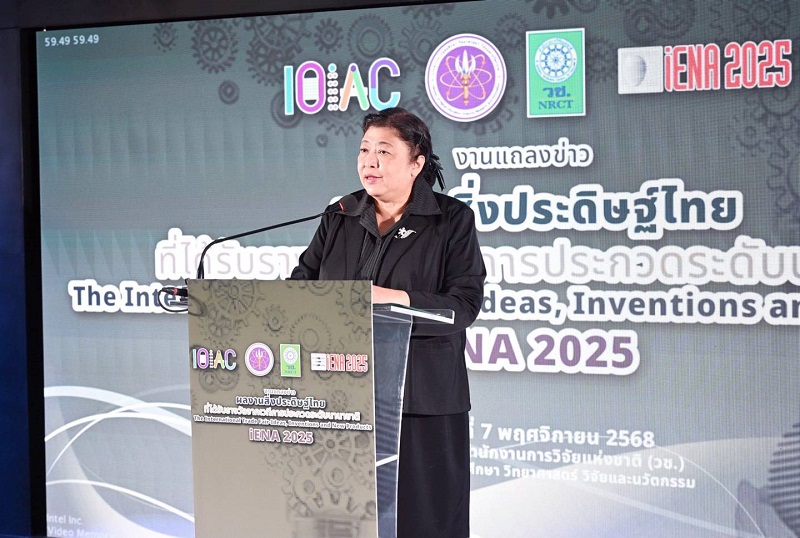 วันที่ 7 พฤศจิกายน 2568 สำนักงานการวิจัยแห่งชาติ(วช.) กระทรวงการอุดมศึกษา วิทยาศาสตร์ วิจัยและนวัตกรรม จัดการแถลงข่าวผลงานสิ่งประดิษฐ์ไทยที่ได้รับรางวัลจากเวที “The International Trade Fair-Ideas, Inventions and New Products” (iENA 2025) โดย ดร.วิภารัตน์ ดีอ่อง ผู้อำนวยการสำนักงานการวิจัยแห่งชาติ เป็นประธานในพิธี ณ ศูนย์ข้อมูลสารสนเทศกลางด้านวิทยาศาสตร์ วิจัยและนวัตกรรมของประเทศ สำนักงานการวิจัยแห่งชาติ