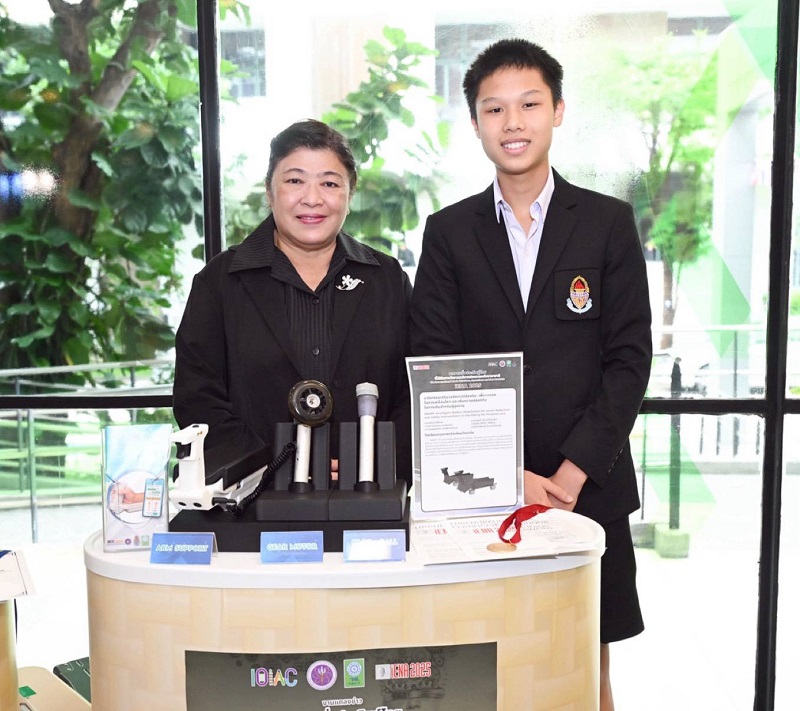 – ผลงานเรื่อง “นวัตกรรมเสริมวอล์คเกอร์อัจฉริยะ เพื่อลดแรงในการเคลื่อนไหว และเพิ่มความปลอดภัย ในการเดินสำหรับผู้สูงอายุ” (รางวัลเหรียญทอง)
