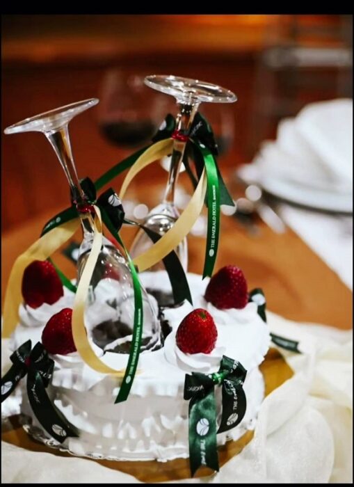 ปลายปีแล้วก็จะได้เวลาที่ต้องเตรียมเฉลิมฉลองส่งท้ายปีเก่าต้อนรับปีใหม่ ที่เค้กช็อพ โรงแรม ดิ เอมเมอรัลด์ ได้คัดสรรเมนูเด่นเพื่อการนี้โดยเฉพาะกับ “เค้กเชอร์รี่แชมเปญดีไลท์” ซึ่งเป็นเค้กที่เข้มข้น และสดชื่นจากผลเชอร์รี่ที่รสเปรี้ยวนำ ผสมผสานกับอบเชยใส่กลิ่นอัลมอนด์ ทำให้รสชาติอร่อย นุ่มนวล เสิร์ฟพร้อมแก้วแชมเปญ เพื่อให้ทุกท่านได้สนุกสนานกับการตักเค้กใส่ปากด้วยถ้วยแชมเปญ