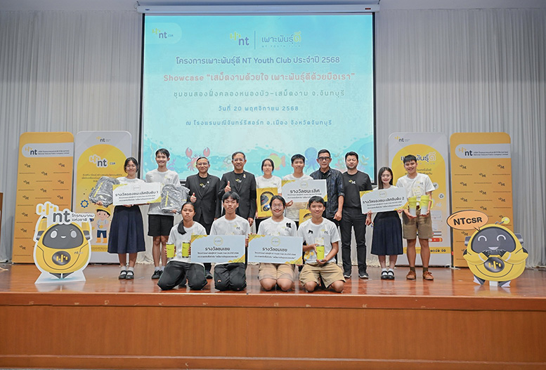 วันที่ 20 พฤศจิกายน 2568 ณ โรงแรมมณีจันทร์รีสอร์ท อำเภอเมือง จังหวัดจันทบุรี บริษัท โทรคมนาคมแห่งชาติ จำกัด (มหาชน) หรือ NT จัดพิธีเปิดกิจกรรม Showcase “เสม็ดงามด้วยใจ เพาะพันธุ์ดีด้วยมือเรา” ภายใต้โครงการ CSR เพาะพันธุ์ดี NT Youth Club ประจำปี 2568 ณ ชุมชนสองฝั่งคลองหนองบัว – เสม็ดงาม จังหวัดจันทบุรี  จัดขึ้นเพื่อสร้างความต่อเนื่องในการพัฒนาชุมชนในโครงการเพาะพันธุ์ดี NT Youth Club ในพื้นที่จังหวัดจันทบุรี โดย นายมนต์สิทธิ์ ไพศาลธนวัฒน์ ผู้ว่าราชการจังหวัดจันทบุรี พร้อม นายปิยะ รัชตวรคุณ ผู้ช่วยกรรมการผู้จัดการใหญ่ กลุ่มขายและปฏิบัติการลูกค้าภาคตะวันออก ร่วมเป็นประธานในพิธี โดยมี นายวรชาติ อาลัยลักษณ์ ผู้จัดการฝ่ายขายและปฏิบัติการลูกค้า ภาคตะวันออกตอนบน ของ NT หน่วยงานภาครัฐและเอกชนในจังหวัดจันทบุรี คณะผู้บริหาร นักเรียนจากตัวแทนชุมชนภาคตะวันออก 11 แห่ง เข้าร่วมงาน และนำสินค้าของชุมชนร่วมออกร้าน พร้อมอบรมประกวดคลิปสั้นในกิจกรรม Showcase กิจกรรม CSR ปล่อยปูปลา ณ ป่าชายเลนเสม็ดงาม เพื่อปลูกจิตสำนึกเยาวชนในการอนุรักษ์ธรรมชาติ