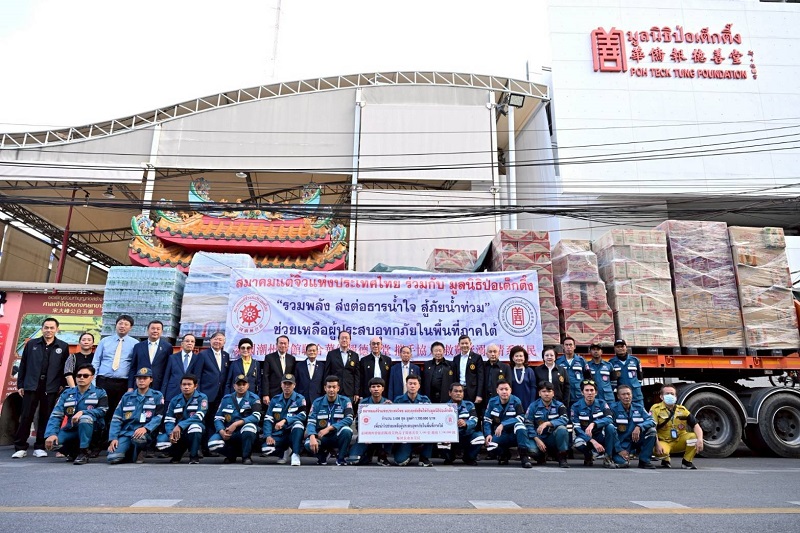 วันนี้ (วันเสาร์ที่ 13 ธันวาคม พ.ศ. 2568) มูลนิธิป่อเต็กตึ๊ง นำโดย นายสัก กอแสงเรือง รองประธานกรรมการ นายวิชิต ชินวงศ์วรกุล รองประธานกรรมการ นายวิรุฬ เตชะไพบูลย์ ที่ปรึกษาประธานกรรมการ พร้อมด้วย คณะกรรมการ และผู้ช่วยกรรมการมูลนิธิฯ ร่วมกับ สมาคมแต้จิ๋วแห่งประเทศไทย นำโดย นายชิม ชินวิริยกุล นายกสมาคม พันตำรวจเอก โกวิทย์ จิรชนานนท์ อุปนายก นายชุณห์ เลิศชัยประเสริฐ อุปนายก จัดพิธีปล่อยคาราวานเครื่องอุปโภคบริโภค ซึ่งได้รับบริจาคจากสมาคมแต้จิ๋วแห่งประเทศไทยสำหรับจัดถุงยังชีพ 3,400 ชุด รวมมูลค่า 1,700,000 บาท (หนึ่งล้านเจ็ดแสนบาทถ้วน) บรรทุกรถเทรลเลอร์ รถบรรทุกมูลนิธิฯ พร้อมกำลังเจ้าหน้าที่ และกำลังทีมบรรเทาสาธารณภัย มูลนิธิป่อเต็กตึ๊ง ออกเดินทางจากมูลนิธิป่อเต็กตึ๊ง พลับพลาไชย มุ่งสู่ภาคใต้เพื่อนำแจกจ่ายให้กับผู้ประสบภัยน้ำท่วมในพื้นที่ภาคใต้