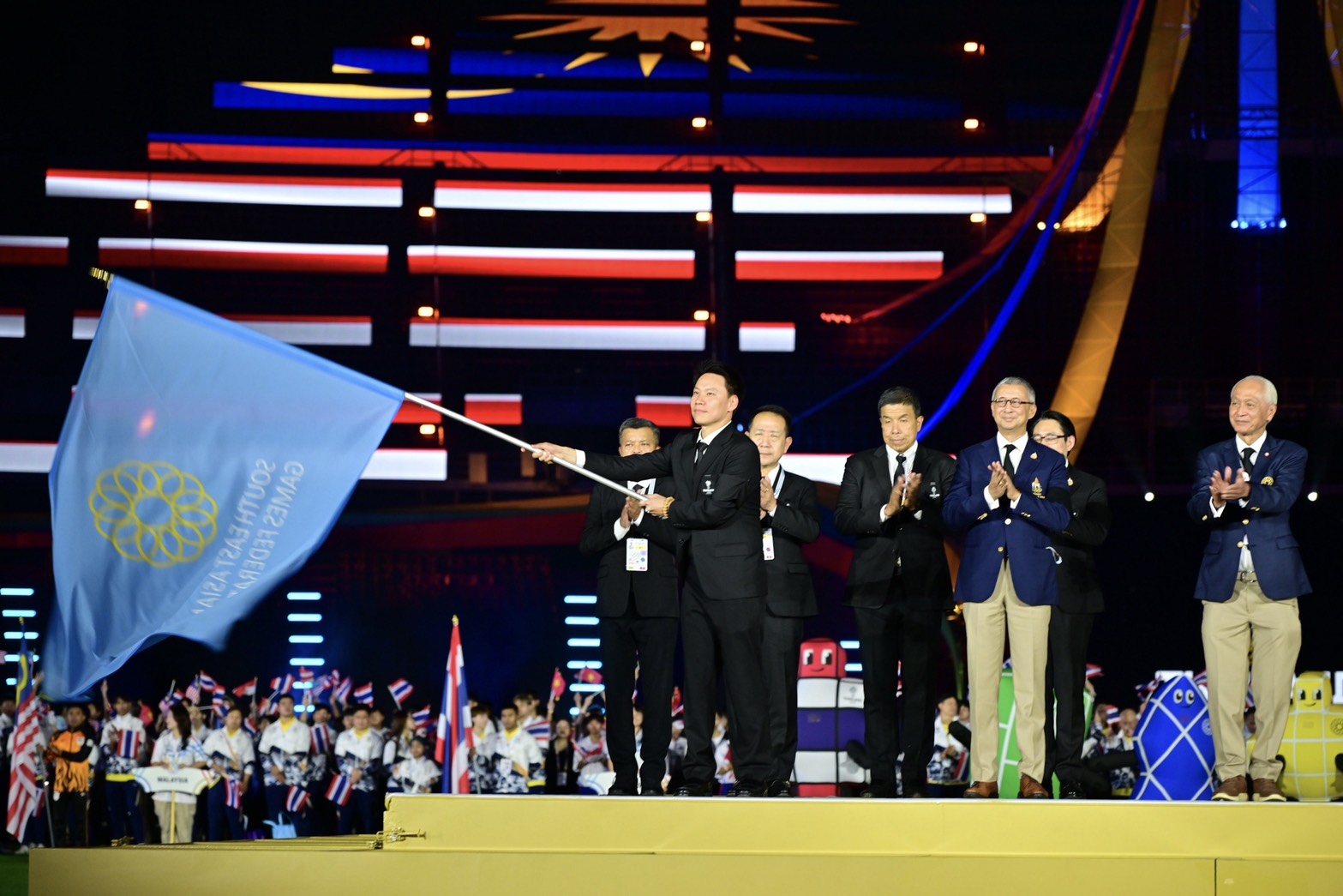 ร้อยเอก ธรรมนัส พรหมเผ่า รองนายกรัฐมนตรี ให้เกียรติเป็นประธานในพิธีปิดการแข่งขันกีฬาซีเกมส์ ครั้งที่ 33 พ.ศ. 2568 โดยมีนายอรรถกร ศิริลัทธยากร รัฐมนตรีว่าการกระทรวงการท่องเที่ยวและกีฬา ประธานคณะกรรมการจัดการแข่งขัน กล่าวรายงาน ในโอกาสนี้ นายกองเอก ชัยภักดิ์ ศิริวัฒน์ รองประธานสหพันธ์กีฬาเอเชียตะวันออกเฉียงใต้ ประธานเจ้าหน้าที่บริหารสหพันธ์กีฬาเอเชียตะวันออกเฉียงใต้, ผศ.พิมล ศรีวิกรม์ ประธานคณะกรรมการโอลิมปิคแห่งประเทศไทยในพระบรมราชูปถัมภ์, นางสาวนัทรียา ทวีวงศ์ ปลัดกระทรวงการท่องเที่ยวและกีฬา, ดร.ก้องศักด ยอดมณี ผู้ว่าการการกีฬาแห่งประเทศไทย (กกท.), นางสาวฐาปนีย์ เกียรติไพบูลย์ ผู้ว่าการการท่องเที่ยวแห่งประเทศไทย (ททท.) ผู้บริหารระดับสูงสังกัดกระทรวงการท่องเที่ยวและกีฬา คณะผู้บริหารกรุงเทพมหานคร จังหวัดชลบุรี และจังหวัดสงขลา, คณะกรรมการจัดการแข่งขันฯ, เจ้าหน้าที่, นักกีฬา, สื่อมวลชน และประชาชน เข้าร่วมในพิธี ณ ราชมังคลากีฬาสถาน กกท.