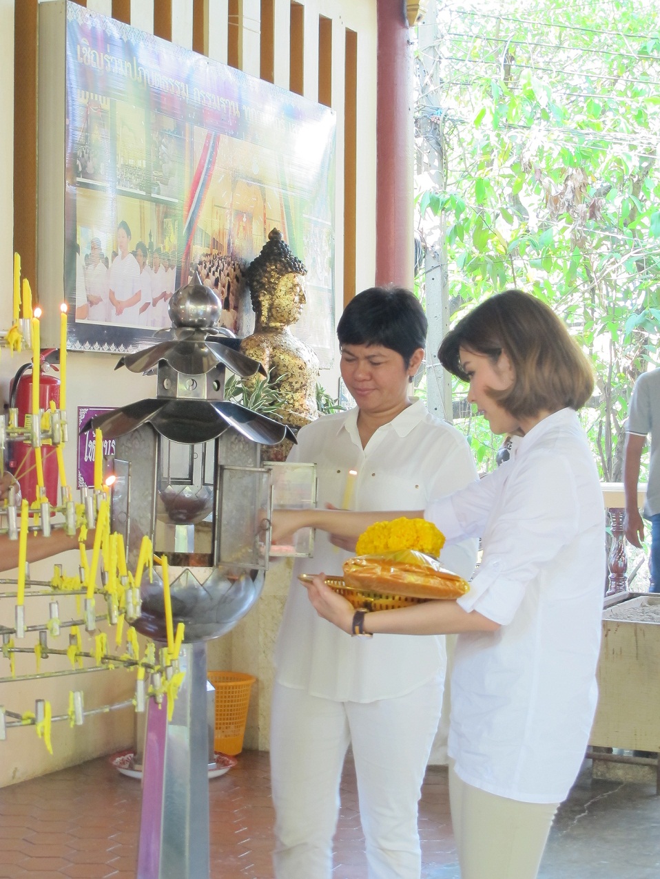 ซึ่งไหนๆ ก็ได้มาวัดท่าไม้ทั้งที เจ้าตัวเลยทำบุญชุดใหญ่ทั้งทำบุญสะเดาะเคราะห์แก้ชงกับเทพเจ้าต่างๆ แล้ว ยังถือโอกาสกราบสักการะหลวงปู่รุ่ง , ปล่อยปลา ที่สำคัญยังได้การบนมัสการพระครูปลัดอุเทน สิริสาโร (เจ้าอาวาสวัดท่าไม้) อีกด้วย