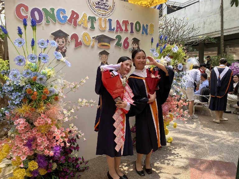 สมาคมนิติศาสตร์ มหาวิทยาลัยรามคำแหง ขอเชิญชวนบัณฑิตใหม่ทุกคณะ พร้อมครอบครัว ร่วมถ่ายภาพและบันทึกช่วงเวลาแห่งความสำเร็จได้จนถึงวันที่ 15 กุมภาพันธ์ 2569 ณ อาคารคณะนิติศาสตร์ มหาวิทยาลัยรามคำแหง