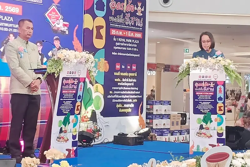วันพุธที่ 25 กุมภาพันธ์ 2569 เวลา 15.00 น. นายราชันย์ ซุ้นหั้ว ผู้ว่าราชการจังหวัดอุดรธานี ประธานในพิธีเปิดงานแสดงและจำหน่ายสินค้า “อุดรเด้อ ของดีถิ่นอีสาน” ครั้งที่ 2 กิจกรรมจัดงานแสดงและจำหน่ายสินค้ารวมทั้งเจรจาธุรกิจ ภายใต้โครงการการพัฒนาคุณภาพสินค้าและบริการ ประจำปีงบประมาณ พ.ศ. 2569 เพื่อเพิ่มช่องทางการตลาดให้แก่ผู้ประกอบการ เกิดการแลกเปลี่ยนเรียนรู้และเชื่อมโยงเครือข่ายทางธุรกิจในจังหวัดอุดรธานีและภูมิภาคอื่นๆ อีกทั้งยังเป็นการเผยแพร่ประชาสัมพันธ์และส่งเสริมให้ผู้บริโภคได้รับรู้ถึงคุณภาพของสินค้า/ผลิตภัณฑ์ของจังหวัดอุดรธานีอย่างแพร่หลาย โดยมุ่งเน้นการสร้างทัศนคติ (New Attitude) และภาพลักษณ์ที่ดีของสินค้า/ผลิตภัณฑ์ (Brand Image) ภาพลักษณ์ที่ดีของผู้ผลิต (Corporate Image)