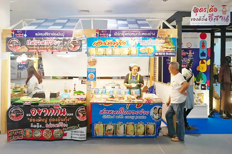 การจำหน่ายสินค้าอัตลักษณ์และสินค้าเด่นของผู้ประกอบการจังหวัดอุดรธานี จำนวน 40 คูหา อาทิ ผ้าไหม ผ้าหมี่ขิด เสื้อผ้าเครื่องแต่งกาย สมุนไพร เครื่องหนัง เครื่องประดับ และอาหารและเครื่องดื่ม เป็นต้น
