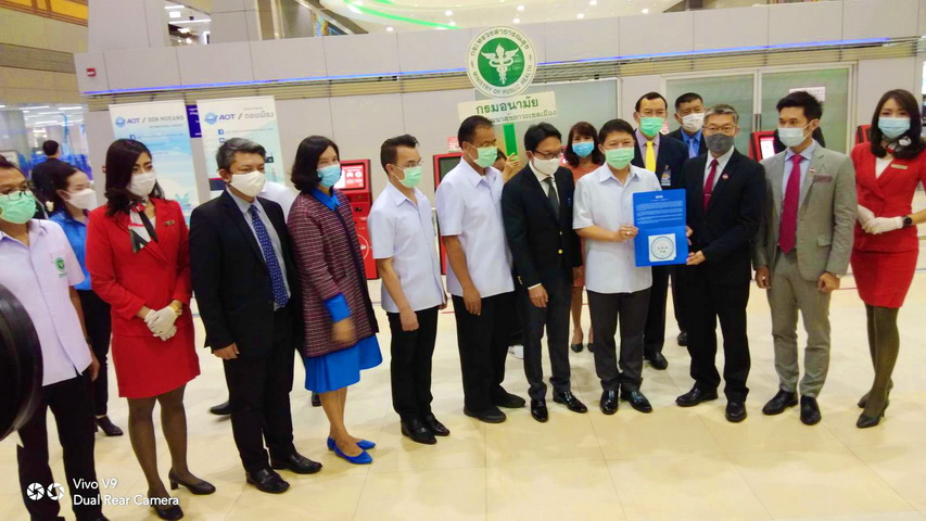 ททท. ร่วมกับ กรมอนามัย เยี่ยมชมมาตรการสาธารณสุขและการให้บริการเพื่อรองรับนักท่องเที่ยวของท่าอากาศยานดอนเมือง และมอบตราสัญลักษณ์มาตรฐาน SHA ให้แก่สายการบินไทยแอร์เอเชีย