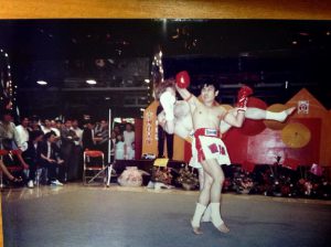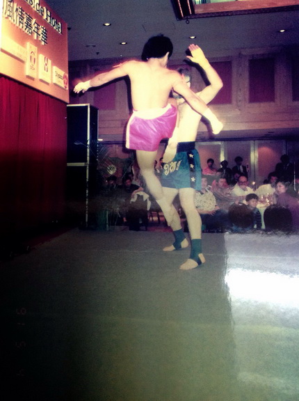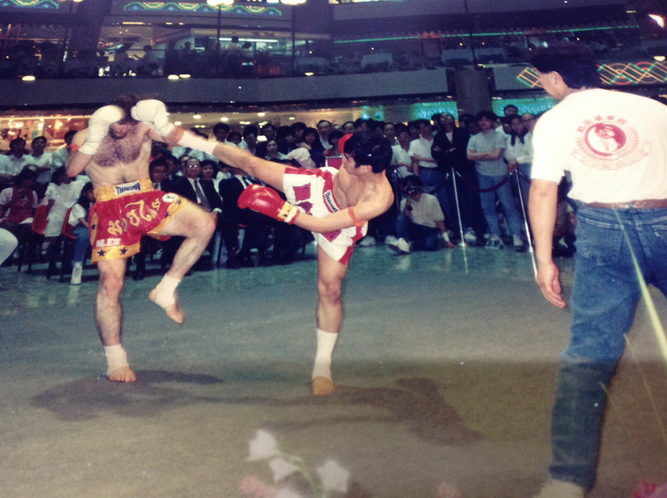 งานแสดงสินค้าไทยที่ศูนย์การค้าในย่านไท่กู้ฉิ่ง จึงเป็นการเปิดตลาดมวยไทย ผมถ่ายวิชามวยไทยให้กังฟูต่างๆมาช่วยชกโชว์ในรอบการแสดง และ Mike Miles ลูกศิษย์บินมาจากแคนาดามาช่วยงานผม รวมทั้งชกโชว์กับผมด้วย