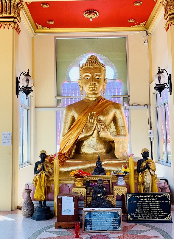 จุดที่ 4 เข้าวิหารหลวงพ่อโตนาลันทา เป็นพระพุทธรูปองค์ใหญ่ปางปฐมเทศนา ก็แวะกราบไหว้เพื่อความสุขสวัสดิ์ได้ครับ