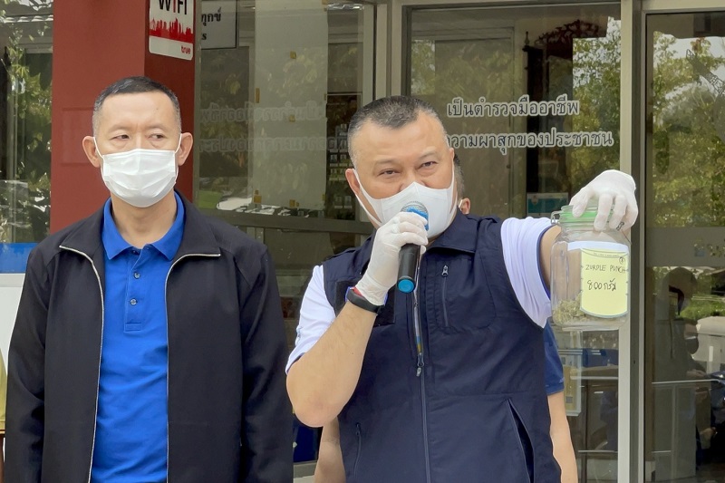 พ.ต.อ.กฤษณะ พัฒนเจริญ รอง โฆษก ตร. และ โฆษก บช.สอท. กองบัญชาการตำรวจสืบสวนสอบสวนอาญชากรรมทางเทคโนโลยี (บช.สอท.) แถลงผลการปฏิบัติการจับกุมการซื้อขายดอกกัญชาแปรรูปผ่านแอพพลิเคชั่นไลน์ ดังนี้