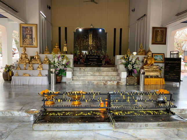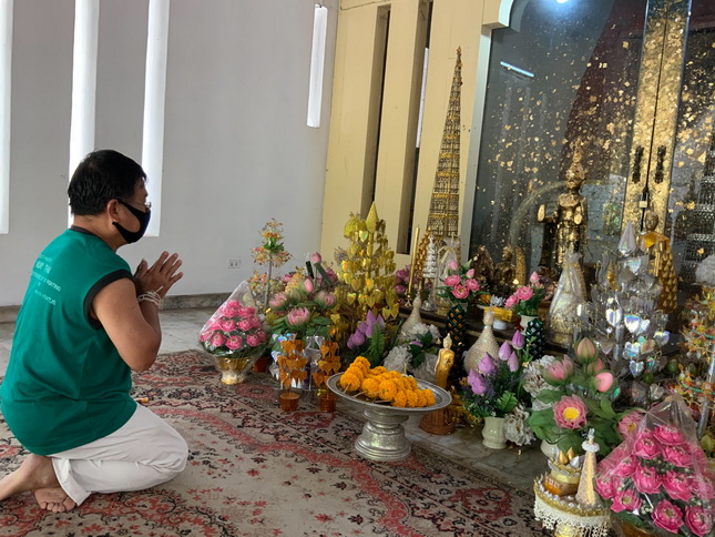 ทุกครั้งที่ผมแวะมา จะกำเทียนไขสีเหลือง มา 1 ห่อ จุดทุกช่องเสียบเทียนไขให้สว่างไสว จุดธูป 9 ดอก และกราบสามครั้ง อธิษฐาน และทุกครั้ง ผมจะเดินภายในรั้วปูนล้อมเจดีย์สามรอบ อธิษฐานเสมอ