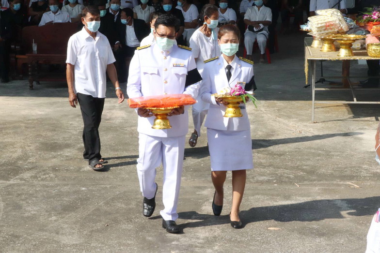 ในวันฌาปนกิจ​ศพ​ ทางลูกหลานและญาติ​ผู้ใหญ่​ ได้บำเพ็ญกุศล​ขึ้นที่วัดสร้างบุญ​ ตำบล​สร้าง​บุญ​ อำเภอวิหารแดง​ จังหวัดสระบุรี​ ได้เชิญผู้หลักผู้ใหญ่​ ญาติมิตรและแขกผู้มีเกียรติ​มาร่วมงานกันอย่างคับคั่ง​ โดยมีท่าน​สมาชิก​สภาผู้แทนราษฎร​ นายพิษณุ​ พลธี  เขต​ 6​ จังหวัดปทุมธานี​ มาเป็นประธานในการทอดผ้าไตรบังสุกุล​