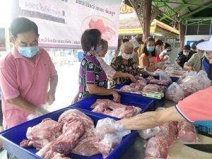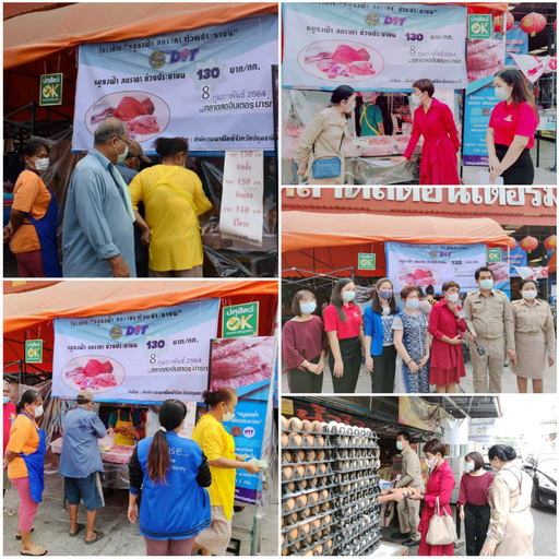 จากผลกระทบด้านราคาสุกรที่ปรับสูงขึ้น สำนักงานพาณิชย์จังหวัดปทุมธานี ร่วมกับผู้ประกอบการเขียงหมูในปทุมธานี เปิดจุดธงฟ้าขายหมู ระหว่างวันที่ 8-14 กุมภาพันธ์ 2564