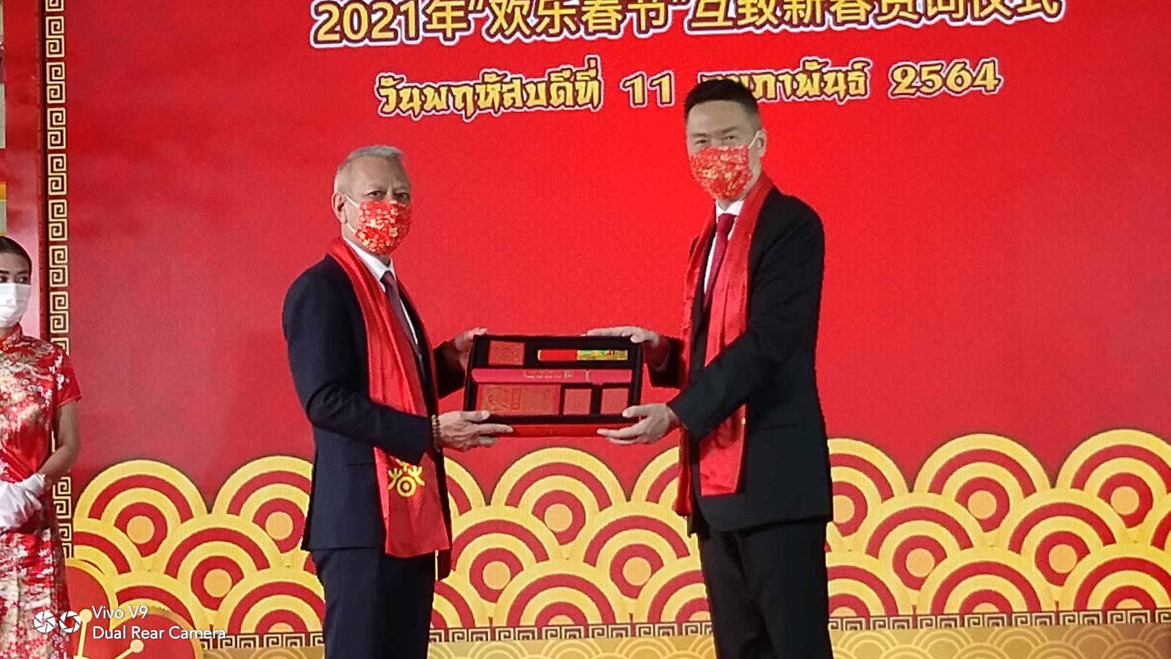 นายพิพัฒน์รัชกิจประการ รัฐมนตรีว่าการกระทรวงการท่องเที่ยวและกีฬา กล่าวว่า ปี2563 ถือเป็นปีที่ท้าทายและยากล าบากที่สุดปีหนึ่งของคนทั่วโลก รวมทั้งสาธารณรัฐประชาชนจีนและประเทศไทย ด้วยสถานการณ์การแพร่ระบาดของโรคติดเชื้อไวรัสโคโรนา 2019 (โควิด-19) ที่เกิดขึ้น ทำให้ประชาชนของทั้ง 2 ประเทศไม่สามารถเดินทางไปมาหาสู่กันได้อย่างปกติ แต่ในทางกลับกันเหตุการณ์นี้ ทำให้เห็นถึงความรัก ความเอื้ออาทร และความปรารถนาดีต่อกันของพี่น้องชาวไทยและชาวจีน ดังคำกล่าวว่า “จีน-ไทย ใช่อื่นไกล พี่น้องกัน” ในโอกาสนี้ จึงขออวยพรให้ชาวไทย ชาวจีน ทั้งในประเทศไทยและสาธารณรัฐประชาชนจีนมีความสุข สุขภาพแข็งแรง ร่ำรวยเงินทอง โชคดีสมปรารถนาทุกประการ และมีความยินดีพร้อมต้อนรับชาวจีนทุกท่านเมื่อสถานการณ์คลี่คลายลง ภายในงานยังได้เผยแพร่วิดีโออวยพรเนื่องในเทศกาลตรุษจีนจากสมเด็จพระมหารัชมงคลมุนี หรือสมเด็จธงชัย และนายหู เหอผิง (H.E. Hu Heping) รัฐมนตรีว่าการกระทรวงวัฒนธรรมและการท่องเที่ยวสาธารณรัฐประชาชนจีน
