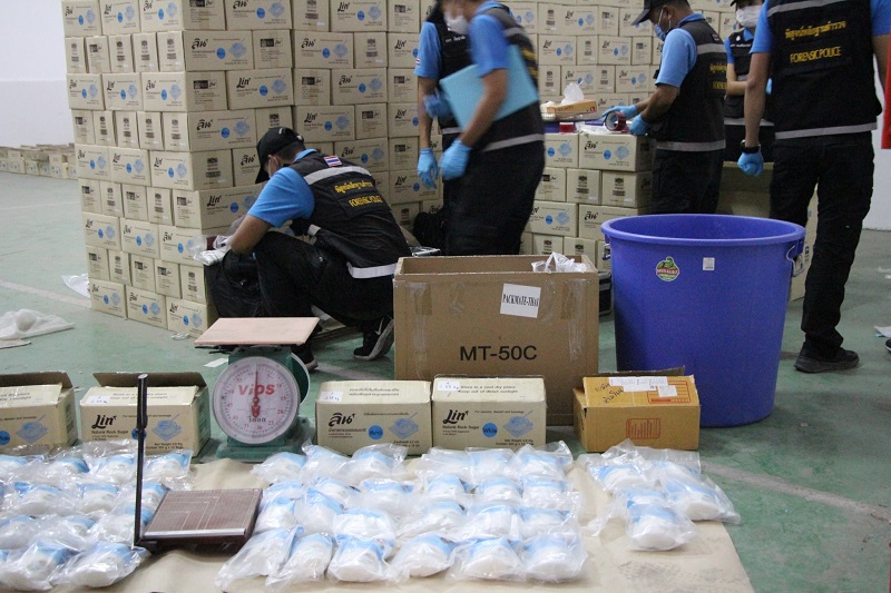 บช.ปส. จับยาไอซ์ 20 กก. ใส่ถุงน้ำตาลทราย ซุกซ่อนในโกดัง จ.นนทบุรี ส่งออกต่างประเทศ