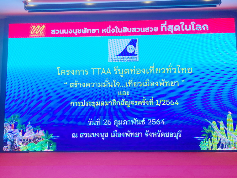 เมื่อวันที่ 25 – 26 กุมภาพันธ์ 2564 สมาคมไทยบริการท่องเที่ยว หรือ ทีทีเอเอ โดยคุณสุทธิพงศ์ เผื่อนพิภพ นายกสมาคมฯ จัดโครงการ TTAA รีบูตท่องเที่ยวทั่วไทย “สร้างความมั่นใจเที่ยวเมืองพัทยา” และจัดประชุมสัญจรสมาชิกครั้งที่ 1/2564 โดยนำสมาชิก เยี่ยมชมสถานที่ท่องเที่ยวต่าง ๆ ในเมืองพัทยา ที่เตรียมความพร้อมต้อนรับนักท่องเที่ยวหลังสถานการณ์โควิด 19