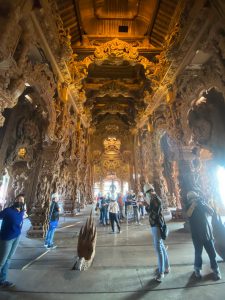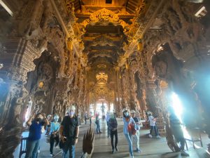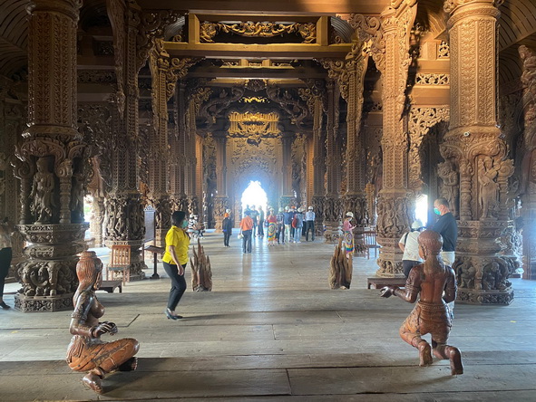 ก่อนกลับกรุงเทพฯ ทางคณะได้แวะชมปราสาทสัจธรรม เป็นปราสาทที่ทำด้วยไม้ทั้งหลังที่มีขนาดใหญ่ที่สุดในประเทศไทย และเป็นปราสาทไม้ที่ใหญ่ที่สุดในโลก ตั้งอยู่ที่ แหลมราชเวช ตำบลนาเกลือ อำเภอบางละมุง จังหวัดชลบุรี หนึ่งในสถานที่ท่องเที่ยวสุดอันซีน ภายในปราสาทได้แฝงเนื้อหาทางปรัชญา และศิลปวัฒนธรรมอันเป็นมรดกของมนุษย์ สะท้อนให้เห็นถึงความสำคัญของศาสนา