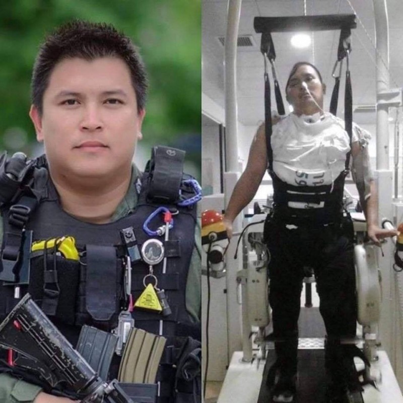 “เขาสู้น่าดูเลย ตอนนี้ดีขึ้นมากจากที่เจอวันแรกโดนระเบิดอาการหนักมาก หมอบอกว่าอาจจะไม่รอด อยู่ห้อง ไอซียู เดือนครึ่ง ออกไปอยู่พักฟื้นอีกครึ่งเดือน นอนเป็นผักเป็นปลาไปแล้ว ก่อนย้ายไปอยู่ รพ.ตำรวจอีก 1 ปี