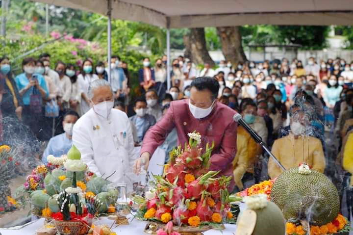 ในช่วงเช้า ได้จัดพิธีบวงสรวงเจ้าแม่จามเทวี , พิธีสักการะพระพุทธชัยวัฒน์ ประทานพร ททท. ,  พิธีสักการะรูปเหมือน จอมพลสฤษดิ์ ธนะรัชต์ และ พิธีสงฆ์จำนวน 9 รูป (จากวัดชนะสงครามราชวรมหาวิหาร) เพื่อความเป็นสิริมงคล