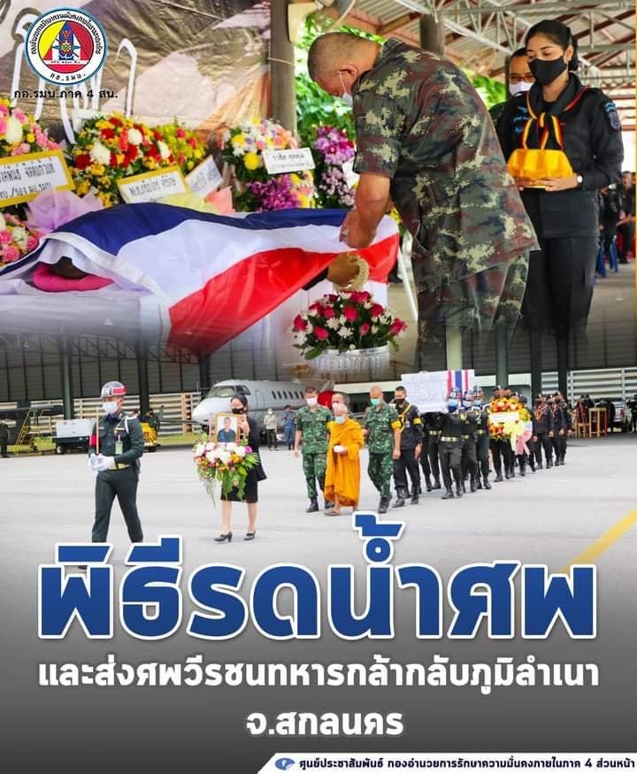 เวลา ๑๓๐๐ น. ที่ สนามบินบ่อทอง อำเภอหนองจิก จังหวัดปัตตานี พลโท พรชัย อินทนู รองผู้อำนวยการรักษาความมั่นคงภายในภาค ๔ ส่วนหน้า เดินทางเป็นประธานในพิธีส่งศพ อาสาสมัครทหารพราน สกล ปัญญา โดยมี ผู้บังคับหน่วยเฉพาะกิจนราธิวาส , รองผู้บังคับหน่วยเฉพาะกิจสงขลา , ส่วนราชการ , เจ้าหน้าที่ทหาร ตำรวจ ร่วมพิธี โดยได้เคลื่อนย้ายศพวีรชนทหารกล้า ด้วยเครื่องบินลำเลียงแบบ C-๒๙๕W เพื่อกลับสู่ภูมิลำเนาอย่างสมเกียรติ ไปยังตำบลวาริชภูมิ อำเภอวาริชภูมิ จังหวัดสกลนคร เพื่อไปบำเพ็ญกุศลตามหลักศาสนาต่อไป