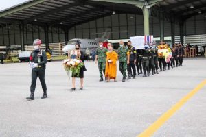 ในการนี้ พลโท พรชัย อินทนู รองผู้อำนวยการรักษาความมั่นคงภายในภาค ๔ ส่วนหน้า เป็นผู้แทนวางพวงหรีดเคารพศพในนามของพลเอก ประยุทธ์ จันทร์โอชา นายกรัฐมนตรี, พลเอก ณรงค์พันธ์ จิตต์แก้วแท้ ผู้บัญชาการทหารบก, พลโท เกรียงไกร ศรีรักษ์ แม่ทัพภาคที่ ๔ / ผู้อำนวยการรักษาความมั่นคงภายในภาค ๔ และในนามกองทัพบก