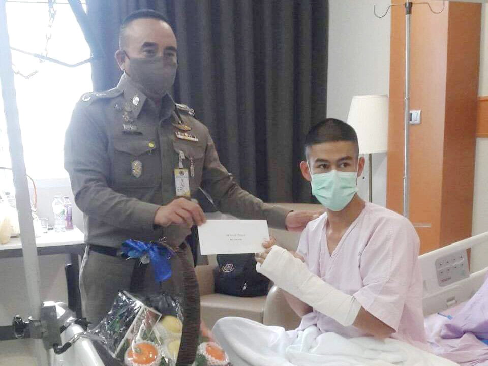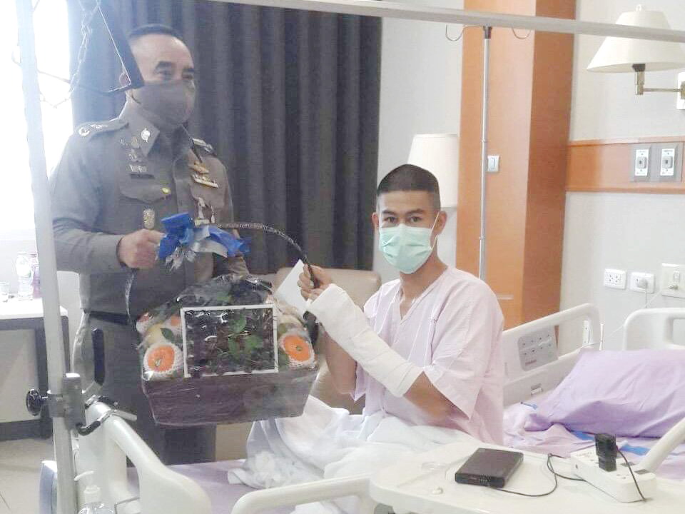 โดย ส.ต.ท.กิตติพันธ์ ชูศรีม่วง มาปฏิบัติภารกิจชุดควบคุมฝูงชน และได้รับบาดเจ็บขณะปฏิบัติภารกิจเป็นเหตุให้ เอ็นหลังมือขาด แพทย์ได้ทำการผ่าตัดต่อเอ็นเป็นที่เรียบร้อย. ขณะนี้พักรักษาตัวพักรักษาตัวอยู่ ที่อาคารมหาภูมิพลราชานุสรณ์ ๘๘ พรรษา รพ.ตำรวจ ตั้งแต่วันที่ ๒๐ มี.ค.๖๔