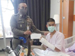 “พล.ต.ต.ณัฐ สิงห์อุดม รอง ผู้บัญชาการตำรวจตระเวนชายแดนรุดเยี่ยมอาการตำรวจชุดควบคุมฝูงชน ณ รพ.ตำรวจ”