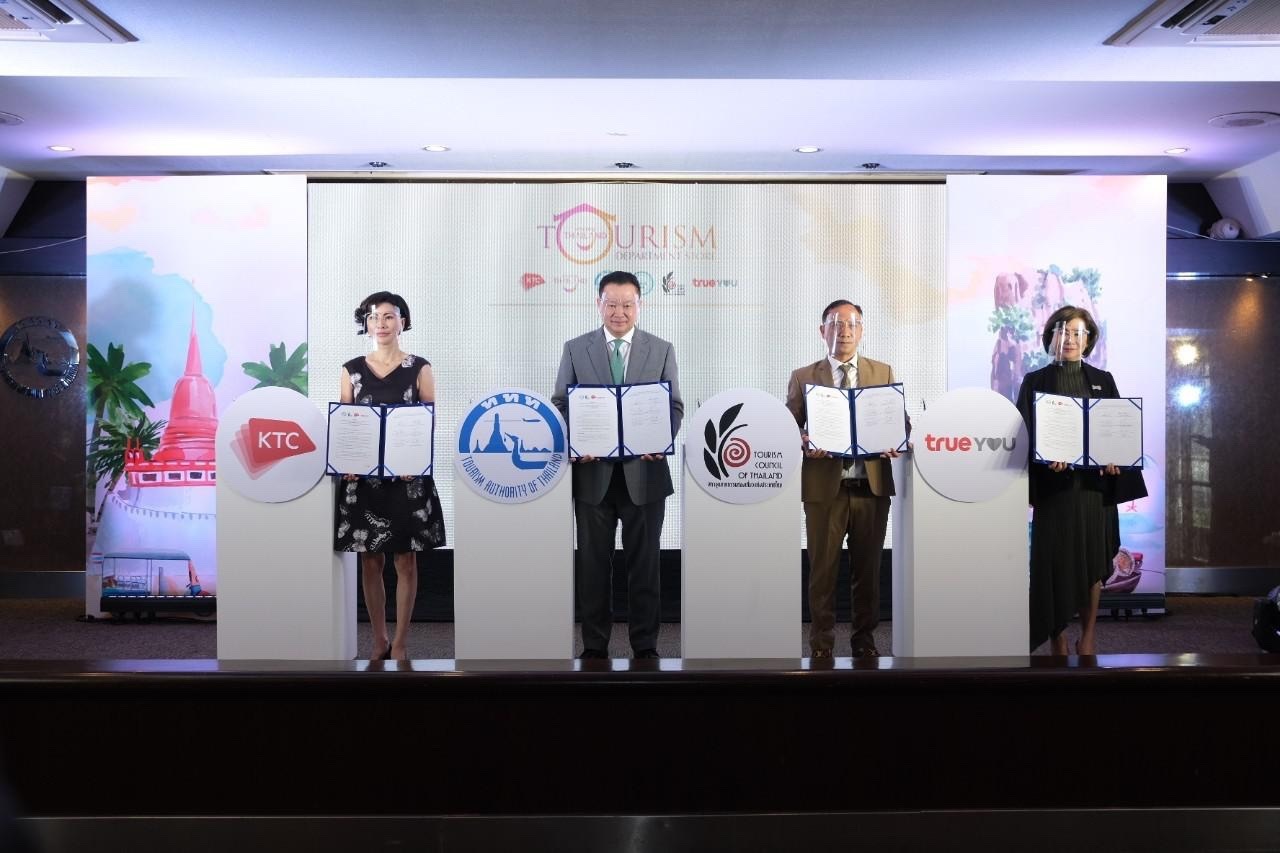 วันที่ 24 มีนาคม 2564 ที่การท่องเที่ยวแห่งประเทศไทย ถนนเพชรบุรี กทม. นายยุทธศักดิ์ สุภสร ผู้ว่าการการท่องเที่ยวแห่งประเทศไทย (ททท.), นายชำนาญ ศรีสวัสดิ์ ประธานสภาอุตสาหกรรมท่องเที่ยวแห่งประเทศไทย (สทท.), นางพิทยา วรปัญญาสกุล รองประธานเจ้าหน้าที่บริหารสายงาน Credit Card บริษัท บัตรกรุงไทย จำกัด (มหาชน) (KTC) และนางนันทิญา อังคณากานต์ รองผู้อำนวยการฝ่ายบริหารความสุขและความสัมพันธ์ลูกค้า บริษัท ทรู ดิจิทัล กรุ๊ป จำกัด (true) ร่วมกันลงนามบันทึกข้อตกลงความร่วมมือโครงการห้าง ททท. (Tourism Department Store) โดยมีเป้าหมายเพื่อบูรณาการความร่วมมือระหว่างหน่วยงานทั้งภาครัฐและเอกชน ในการพัฒนา ขยายช่องทางการตลาด การประชาสัมพันธ์ และสร้างโอกาสในการขายสินค้าการท่องเที่ยวให้กับผู้ประกอบการธุรกิจท่องเที่ยวทั่วประเทศ จนนำไปสู่การเดินทางท่องเที่ยว