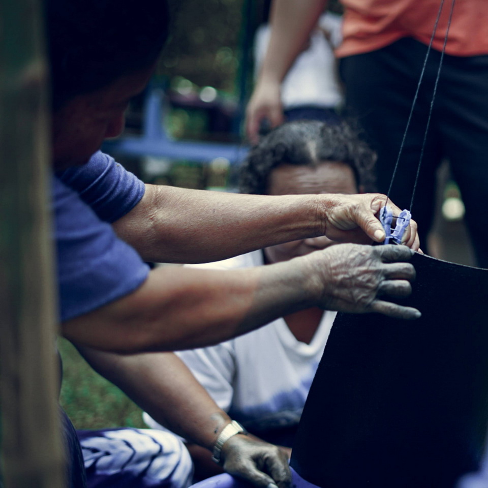 • ใช้วัตถุดิบครามจากต้นครามที่อยู่ในพื้นที่จังหวัดสกลนคร