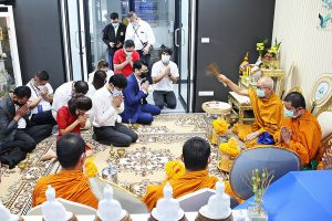 คุณกฤติยาณี พรมแพง คุณพัฒน์พงศ์ พงพาพัฒน์ สองบอสใหญ่ พร้อมด้วยผู้บริหาร เคพีพีเอ็ม โกลบอล กรุ๊ป (KPPM GLOBAL GROUP) อาทิ คุณไสว ณ นคร คุณทวีศักดิ์ สุขศรีนวล คุณภัคพร พิรชัช และพนักงานบริษัท ถือฤกษ์งามยามดีวันอาทิตย์ที่ 25 เมษายน 2564 ทำบุญเลี้ยงพระเปิดออฟฟิศใหม่บนชั้น 20 อาคารเอ็มเอส สยาม ทาวเวอร์ ถนนพระราม 3 แขวงช่องนนทรี เขตยานนาวา กรุงเทพฯ เพื่อความเป็นสิริมงคล โดยได้รับความเมตตาจากพระราชวชิโรดม ผู้ช่วยเจ้าอาวาสวัดยานนาวา เจ้าคณะเขตสาทร พระศรีวชิราภรณ์ ผู้ช่วยเจ้าอาวาสวัดยานนาวา ผู้อำนวยการโรงเรียนพระปริยัติธรรมพรหมวชิรญาณ วัดยานนาวา พระมหาเอก เมธิกญาโณ ผู้ช่วยเจ้าอาวาสวัดยานนาวา เลขานุการเจ้าคณะเขตสาทร ผู้ช่วยหัวหน้าสำนักงานกำกับดูแลพระธรรมทูตไปต่างประเทศ พระครูญาณวิจักข์เลขานุการหัวหน้าสำนักงานกำกับดูแลพระธรรมทูตไปต่างประเทศ และพระสมุห์ธนัทเทพ ธชญาโณ เจ้าหน้าที่สำนักงานวัดยานนาวา ร่วมสวดพระคาถาและประพรมน้ำพระพุทธมนต์ ให้กับผู้บริหาร เคพีพีเอ็ม โกลบอล กรุ๊ป พนักงาน พร้อมด้วยพันธมิตรทางธุรกิจ และแขกผู้มีเกียรติร่วมแสดงความยินดีมากมาย